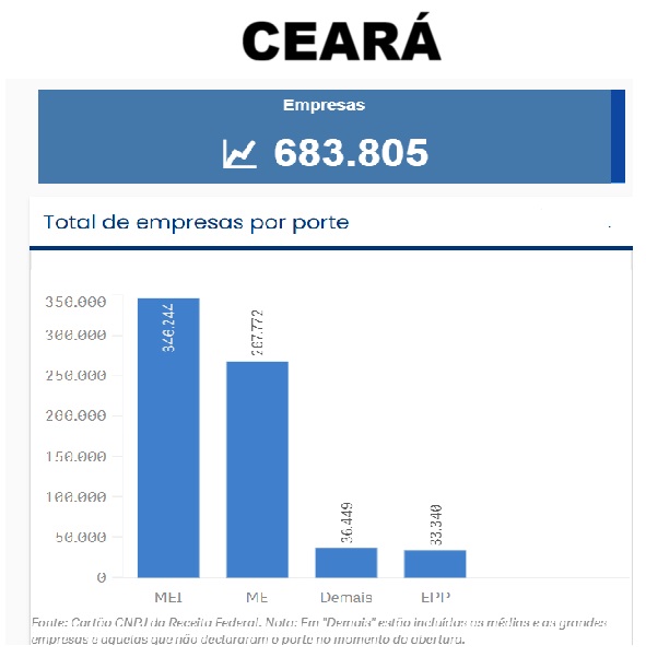 Do total de 25.581.364 empresas formais registradas no país até o dia 27 de setembro, segundo a Receita Federal, 23.373.032 (91%) fazem parte deste segmento. Ou seja, para cada dez empresas legalizadas no país, nove são pequenos negócios. No Ceará, essa proporção é ainda maior, das 683.805 empresas registradas no estado, 95% são pequenos negócios.