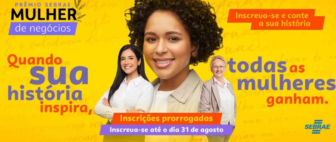 Se você é mulher empreendedora e considera a sua trajetória um exemplo, você tem até sábado (31) para inscrever-se no Prêmio Sebrae Mulher de Negócios (PSMN). Este ano, você pode concorrer nas categorias “Pequeno Negócio”, “Microempreendedora Individual (MEI)”, “Produtora Rural”, “Ciência e Tecnologia (proprietárias de empresas de base tecnológica)” e “Negócios Internacionais”.